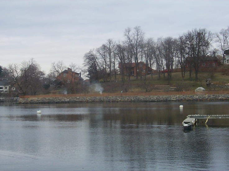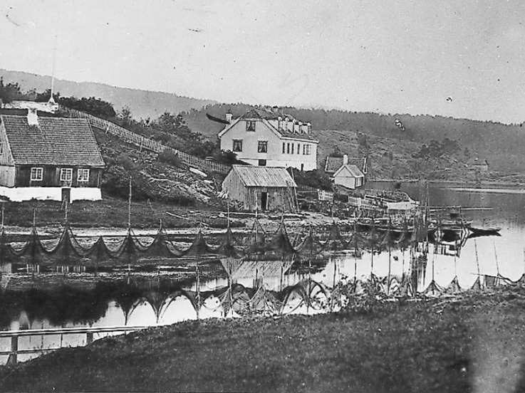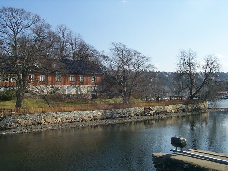Det er portnerbolig, badehus mm. Hageanlegg med naturstensmur mot sjøen.