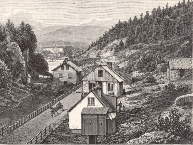 Her er et bilde (kobberstikk) fra 1860 tallet som viser Mosseveien ved Kneppe. Lengst bort til høyre skimtes taket på Vanningssten huset.